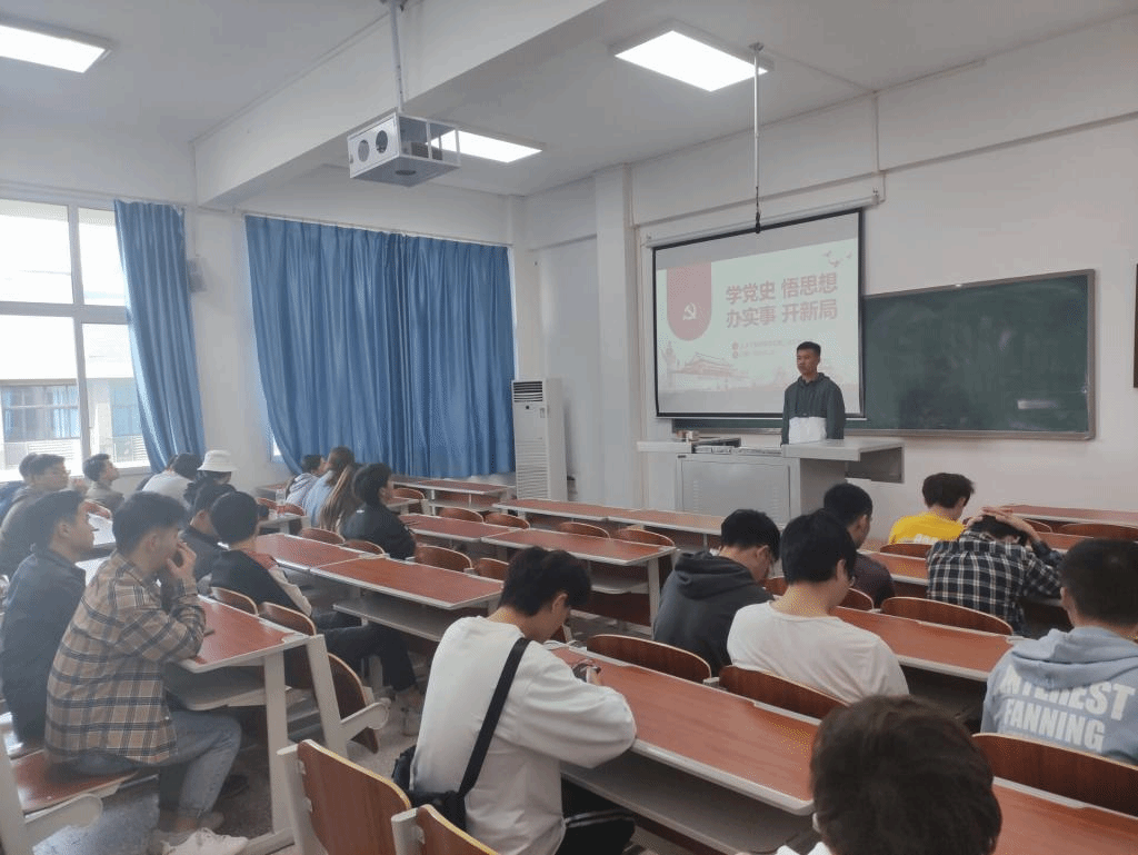3月28日下午,beat365员工党支部党员李果在慎思楼5栋424教室为2018级土木工程专业3班全体党团员讲党史“微党课”。