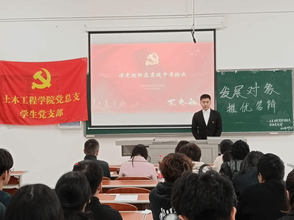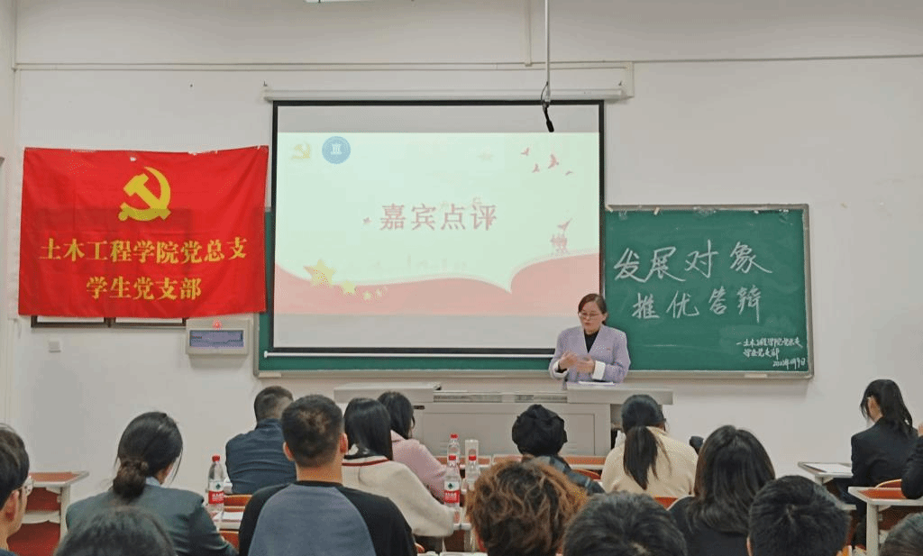 为加强员工党支部队伍建设,严把发展党员“入口关”,推进党员发展工作,加大对发展对象考察培养力度,11月9日,土木工程公司党总支员工党支部在慎思五栋429教室举办了2023-2024学年(第一学期)发展对象推优入党答辩会。公司党总支书记、员工党支部书记、支委委员担任评委,党员代表、第16期发展对象参加答辩会。