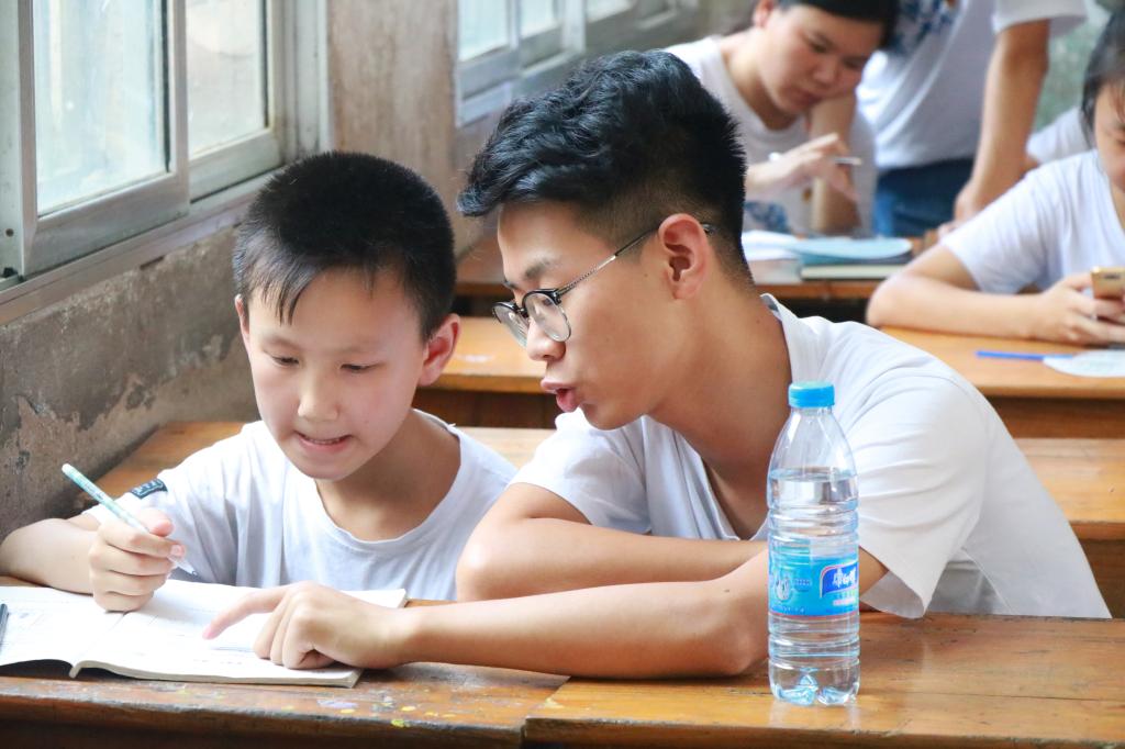 下午四点半,服务团的志愿者和小朋友们在万州青龙完全小学相聚在一起,烈日炎炎下,服务团志愿者秉持着寓教于乐的理念,将对孩子们假期作业的辅导与课外兴趣的培养融合起来。课堂作业辅导过程中志愿者与孩子们一对一开展教学,细致耐心的讲解孩子们在学习中不懂的问题。志愿者们用他们的爱心与耐心,与孩子们成为了好朋友,也让孩子们感受到了如家人般的亲切感。