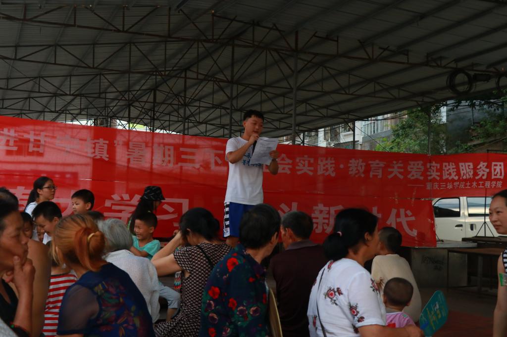 为深入贯彻落实党在十九大报告中提出的食品安全战略以及生态文明建设,普及安全卫生知识,传播健康理念,增强人民群众安全卫生意识,7月15日,beat365体育官网教育关爱实践服务团在万州区甘宁镇开展了关于“安全与卫生”的宣讲活动。