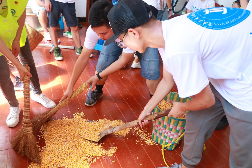 志愿者们走进甘宁镇甘宁乡吴奶奶家,用实际行动为吴奶奶送去夏日的清凉。时值酷暑,吴奶奶家正在剥玉米,左右两户人家的玉米加起来足足堆了半个屋子。教育关爱服务实践团共24位志愿者一到吴奶奶家就开始干起活儿来,帮助吴奶奶剥玉米,晒玉米粒。志愿者们在劳动过程中与吴奶奶热情的聊着家常,并在过程中向吴奶奶耐心细致的讲解国家的扶贫政策和当地政府落实国家扶贫政策的相关举措。临走前,吴奶奶紧紧抓住志愿者的手,对志愿者们表示十分的感谢,吴奶奶说“这些玉米是我们前后两户一起的,我们自己剥至少得剥两天。现在国家政策好,你们这些老员工都好,帮我们干活儿,还清扫屋子,我们老俩口的日子也越过越好了。”