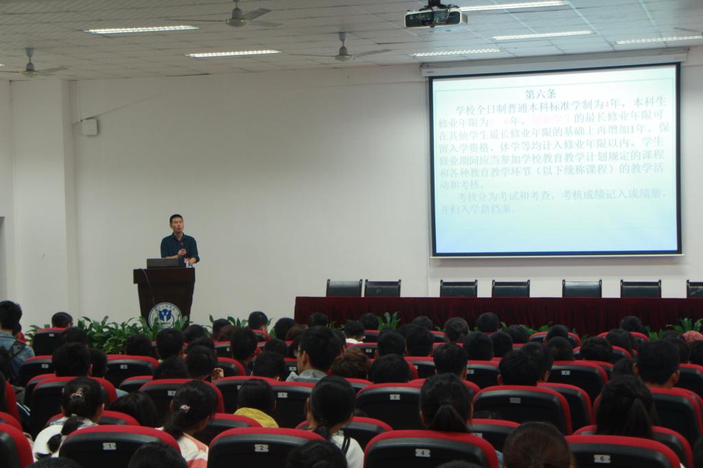 9月25日上午,beat365副经理郭远臣教授为2018级新生做了题为“教学管理规定”的教育讲座,帮助同学们转变角色,适应大学的学习、生活。