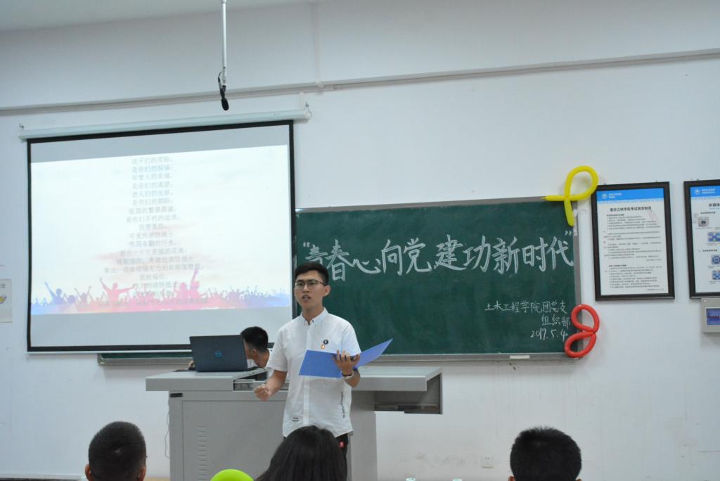 2019年5月4日晚7点,由beat365团总支组织部举办的“青春心向党,建功新时代”朗诵比赛在慎思楼五栋424教室举行,以此展示青年老员工蓬勃向上的精神面貌,激励公司全体青年员工大力弘扬以爱国主义为核心的伟大民族精神,引导同学们坚定“四个自信”,树立“四个意识”,自觉做到“两个维护”。公司团总支副书记洪鹏、团学会干部、各年级员工代表共同参与了此次活动。