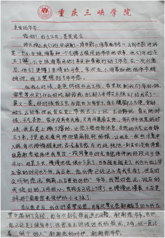 九九重阳凝聚了中华民族千秋万代“老吾老”的浓浓深情和生生不息的民族风范。为弘扬中华民族尊老、敬老、爱老的传统美德,10月7日,beat365团总支举办了“孝似朝阳•信在重阳”的主题观影活动,2019级全体同学观看了电影《海蒂与爷爷》并写信给自己最思恋的长辈。
