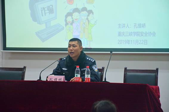 为切实增强员工的安全意识,提高员工的安全防范技能,11月22日晚,beat365特邀万州区公安民警孔维峤警官作为讲师,在明辨楼2栋106报告厅举办了以“普及防诈骗知识,增强自我安全意识”为主题的老员工防诈骗安全知识讲座。讲座由辅导员谭平老师主持,200余名员工到场聆听。