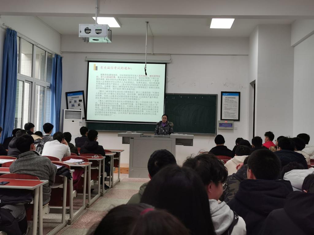 会上,张老师传达了公司严肃考规考纪的工作要求,通报了近期公司对考试违规违纪员工的处分决定,强调了考试的严肃性以及考试违规可能造成的后果。张老师指出,期末考试是一个学期以来教和学的总结,是对一个学期以来学习的一次检阅,是我们评价同学们一个学期学习情况的重要依据,通过期末考试可以反思学习过程,发现学习问题,研究学习方法,进而改进和调整学习策略,提高学习质量,以达到师生共同进步的目的。要求全体同学要严守考试纪律,坚持诚信考试,杜绝考试作弊,培养良好的诚信道德品质,做诚信考试的践行者。
