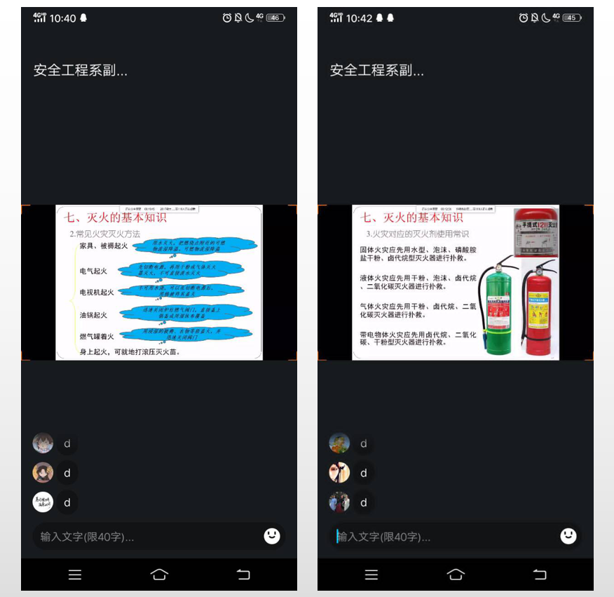 本次宣讲主要围绕消防常识、火灾基础知识以及防火、灭火、逃生等基础知识展开。在宣讲过程中,同学们认真听讲,积极思考郭正超老师关于消防安全的提问,并踊跃回答。