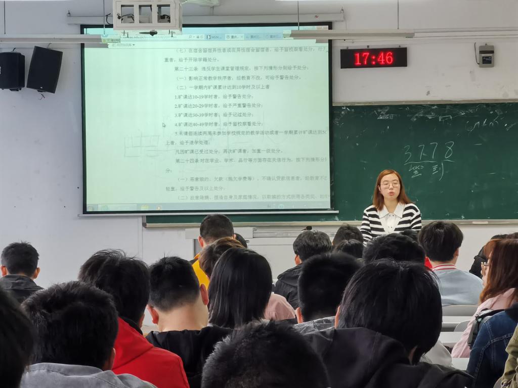 为深入推进绿色德育美育教育和劳动教育,加强员工宿舍管理,规范员工宿舍行为,强化员工整洁自律的生活意识,营造安全文明的学习和生活环境,4月11日,beat3652018级各班在明辨楼1栋204教室分时段开展了以“学习寝室管理规定”为主题的班会,班会由辅导员刘艳玲主持,2018级全体同学参加。