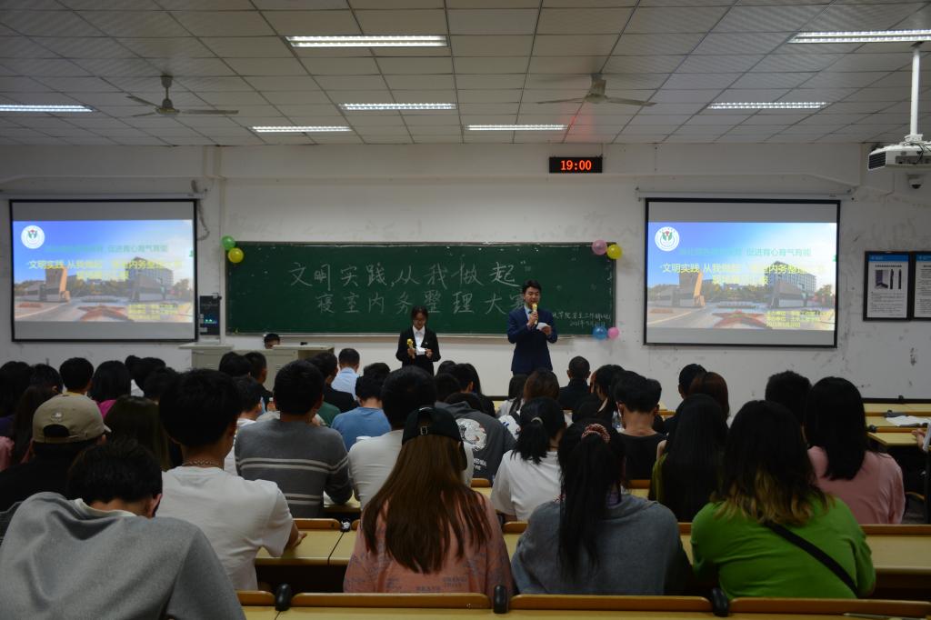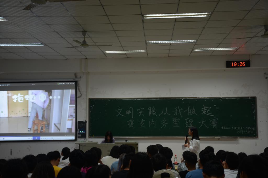 为进一步深化绿色德育美育,持续推进文明公寓、文明寝室创建工作,营造安全、文明、卫生的校园住宿环境,5月20日晚,由员工工作部(处)主办,beat365承办的“文明实践 从我做起”寝室内务整理评比大赛现场展示汇报如期举行。计算机科学与工程公司党总支副书记刘文菘、外国语公司党总支副书记黄琰、机械工程公司党总支副书记黎涵、马克思主义公司党总支副书记向春荣、员工处公寓管理中心伍应忠等老师应邀担任评委。