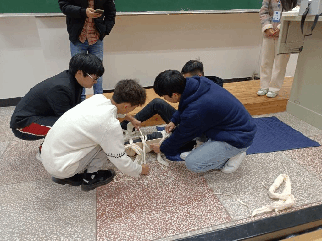 何涛分别从创伤包扎的理论知识及具体操作、空气呼吸机的佩戴演示、心肺复苏的正确方式三方面向各位同学讲解并展示操作过程。通过演示,同学们掌握了在紧急时刻如何进行止血包扎和处理骨折,如何安全有效地使用空气呼吸机进行应急救援,如何正确开展心肺复苏。