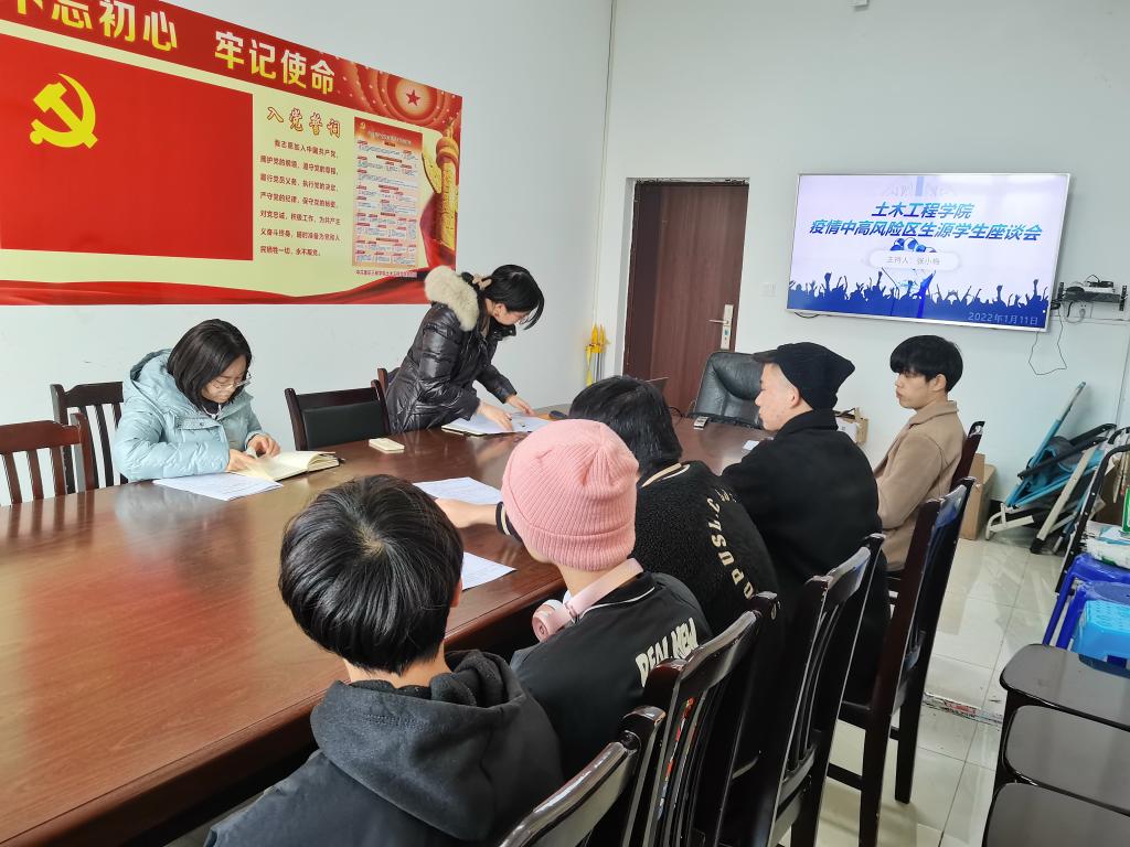 1月11日下午,公司在慎思楼5栋401会议室召开员工座谈会,向全院9名生源地是当前疫情中高风险区的员工表达公司、公司的关心,听取他们目前面临的困难和需求,并对现阶段疫情防控相关信息及防疫政策进行通报。党总支副书记张小梅和相关辅导员现场就相关问题进行了解答。