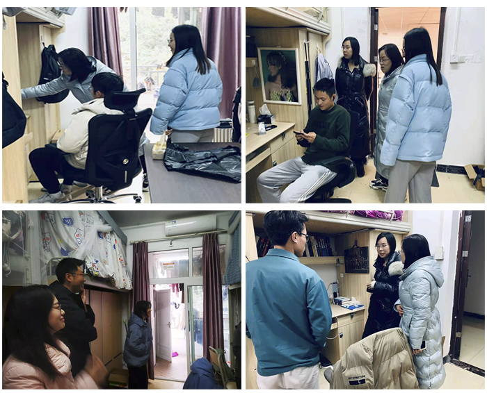 为持续推进员工安全教育管理工作,贯彻落实全市教育系统安全工作紧急电视电话会议和公司安全稳定工作会议精神,1月11日下午,公司党总支副书记张小梅带领全体辅导员深入寝室走访,排查安全隐患。