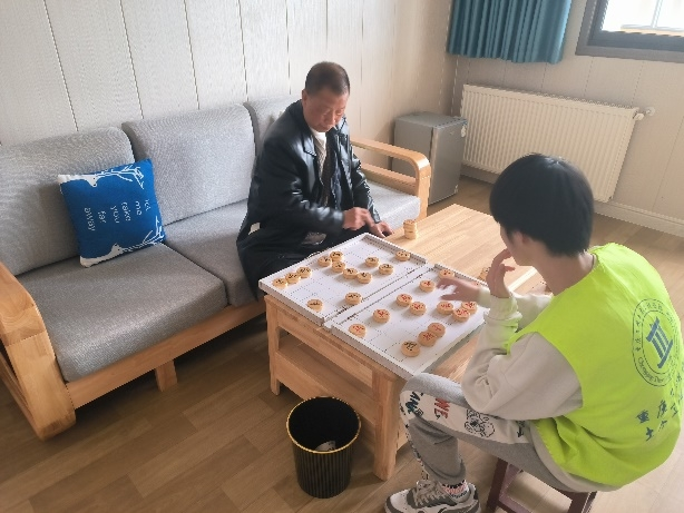 活动现场,志愿者们为老人们打扫清洁、陪老人下象棋、捏肩按摩,并与老人们恳切交谈,把自己当做“家里人”,认真倾听老人们的“心里话”,叮嘱他们注意用电安全,谨防滑倒摔伤,给予他们心理上的关怀,使他们真正体会到社会的关爱,晚辈的敬仰。几个小时的陪伴, 老人们乐得合不拢嘴,脸上洋溢着幸福的笑容,并于当天下午结束时,所有成员和老人们合影留恋后告别。第一次参加慰问活动的向方嘉说:“此次活动的顺利开展,不仅增强了老员工对于爱老敬老这一传统美德的文化归属意识,而且锻炼了大家的活动能力,提高了个人素质,希望有更多同学关心老人。”