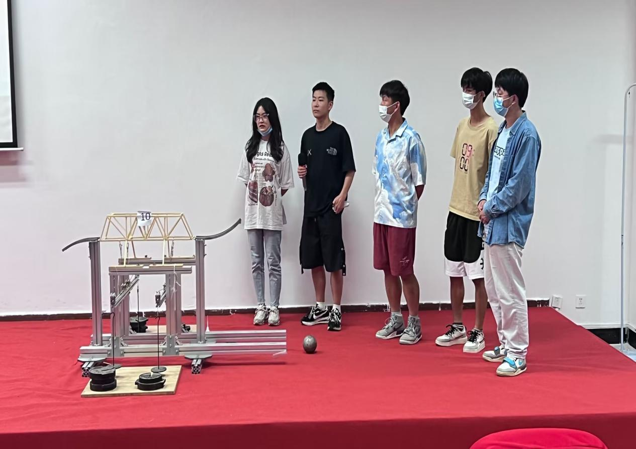 决赛中,文理双赛道选手轮流上台展示作品,其中以beat365唐海军、蹇毅等同学团队模型质量122.4克,成功通过三级加载环节,该作品模型虽然轻盈,但是蕴含着精巧简单的受力结构并完美利用材料的特性,相对其他队伍来说,简洁的作品有着不简单的承载能力,这个组的作品用少量的材料创造不一般的价值,最终荣获第一名。机械工程公司黄俊翔、李博文等同学团队模型质量为264.6克,成功通过三级加载环节,这个小组作品一段高起的斜拉支撑吸人眼球,再加上繁多的桥面设计,让人感叹这个小组设计的高明,最终荣获第二名。其他参赛选手各施所长,共放异彩,共计评选出一等奖1个、二等奖2个,三等奖3个。