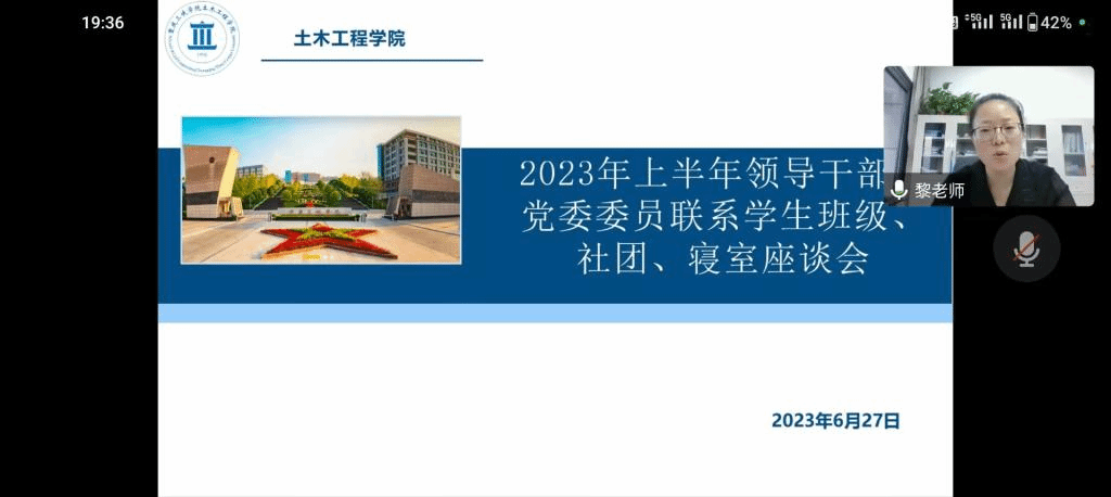 2023年6月27日,公司党委委员、人事处处长黎平与联系的beat3652020级安全工程1班、安全协会、海棠苑3舍345室的员工代表开展了线上座谈,土木工程公司党总支书记罗雪、2020级辅导员尹鸿参与了本次座谈。