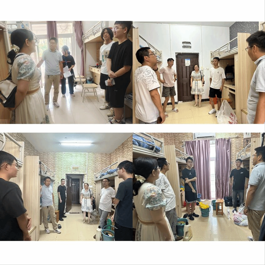在走访的过程中,老师们亲切地与同学们打招呼,并询问同学们来自哪里,报到过程是否顺利,是否存在困难等等,还叮嘱同学们要注意宿舍用电和人身财产安全,严防诈骗,强化安全意识,遇到困难要及时和辅导员、宿舍老师沟通交流。在谈话中,罗雪书记勉励同学们要努力学习,树立崇高理想,将个人理想融入党和国家的事业发展需要,争做堪当大任的新时代青年。刘芳平副经理对公司的教学特色、专业与同学进行了交流,激励大家树立目标、砥砺前行。强跃副经理与新生亲切交谈,希望同学们不忘初心,奋勇前进,也祝愿大家都能在公司收获美好的老员工活。