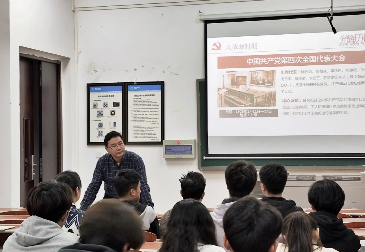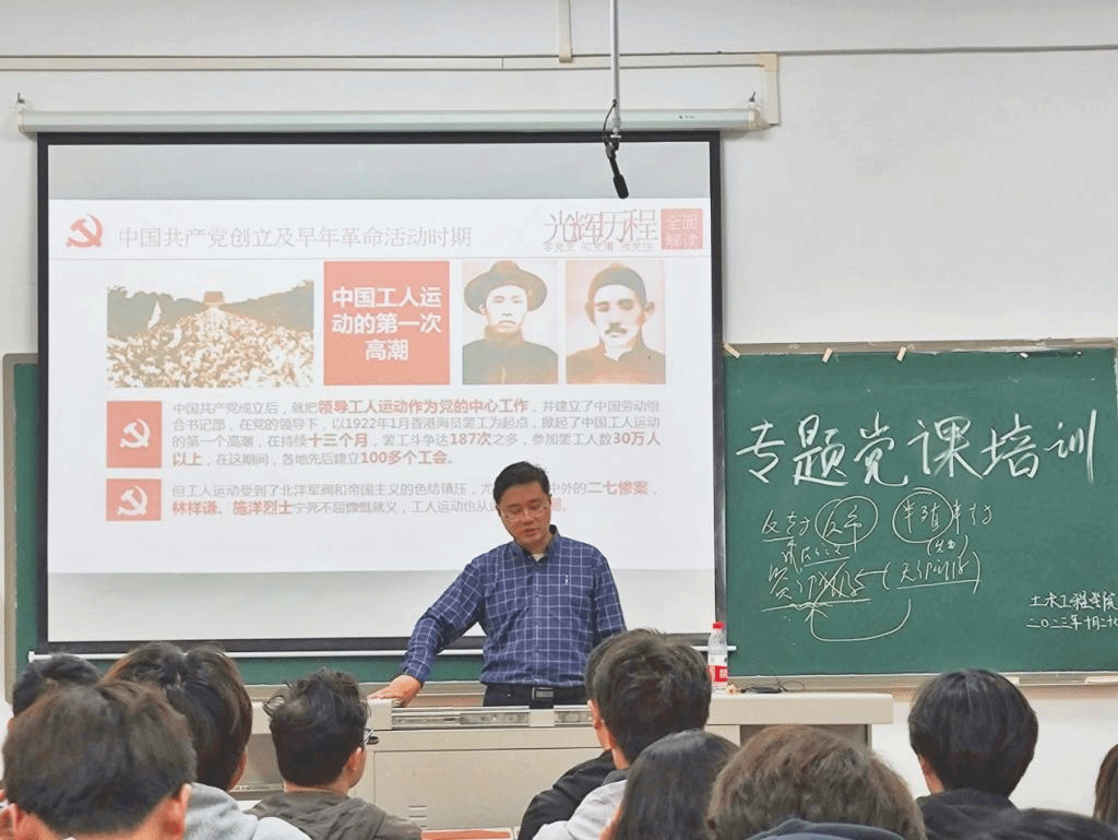 课上,孙佳老师围绕“党史的时代脉络”这一主题,从“中国共产党创立及早年革命时期、大革命时期、土地革命时期、抗日战争时期”这四个方面为全体学员进行了一趟生动的党课。他用极富感染力的表达向我们展现出了党波澜壮阔的历史,告诉同学们欲知大道,必先为史,一百多年来,一代代中国共产党人心有所信、追光而行,他们矢志不渝地为理想信念而不懈奋斗。勉励大家要努力学习,将个人命运与祖国前途命运紧密相连,做一位进步爱国青年,勇于创造,甘于奉献。同学们纷纷表示,党的历史是最生动、最有说服力的教科书。