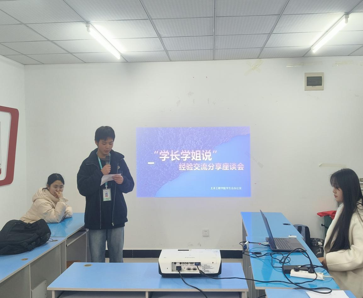 活动负责人以三个问题开场:你是否常常对学分绩点感到困惑?是否在面对各种考试时焦虑不安?是否渴望找到提升学习效率的秘诀?紧接着,曾任学习部负责人和代理班主任的2022级土木工程1班周文乐以专业学习经历为切入点,讲述了如何在学业与社团活动、竞赛项目之间找到平衡点。她举例自己曾参加2024年全国老员工测绘学科创新创业智能大赛的经历,整个暑期都在公司备赛准备,不断模拟重复,最终取得了一等奖。同时,她希望在座的同学们勇敢走出舒适区,因为人工智能发展迅速,测绘类专业的人才培养也面临全新的挑战和机遇,国家的重大战略需求在不断调整,测绘类专业的升级改造,如果大家能有创新创业理念,尝试参加各类学科竞赛和科研项目,拓宽视野,才能在未来增强自身竞争力。