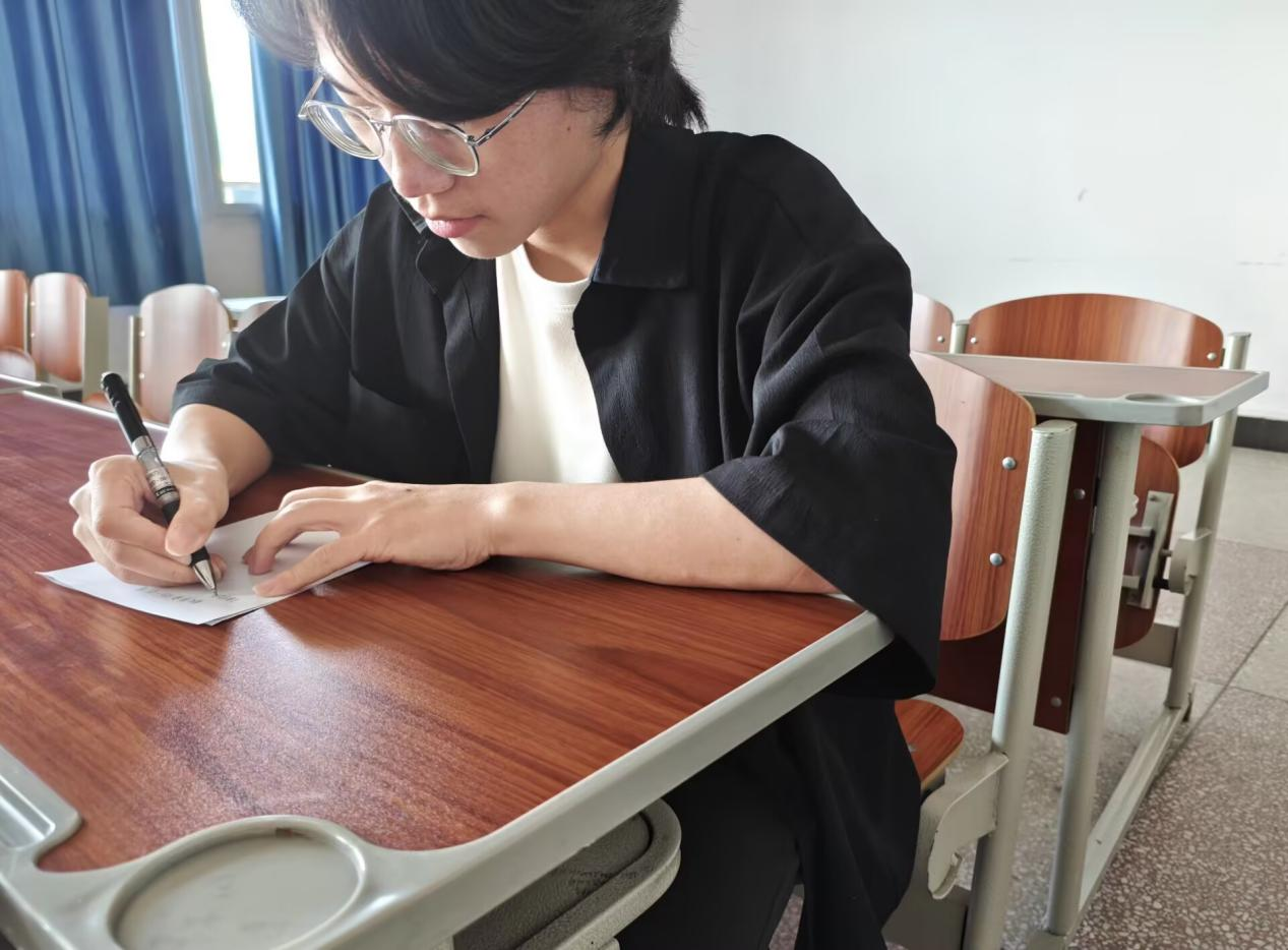 主持人宣布了本次活动规则和目的,是为了促使同学们做好大学职业生涯规划,激发内在的学习动力。随后,参加活动同学们纷纷拿起笔,将过去一年的感悟、遗憾、成长以及对未来三年的期望倾注于笔尖。许多大一同学们回顾了初入大学时的稚嫩与迷茫,对一路上收获的友谊与成长表示感激,同时也反思了学习生活中的不足之处,决心在新的一年里加倍努力,也希望自己能够坚未来三年学习中坚守初心,勇敢地追逐职业梦想。