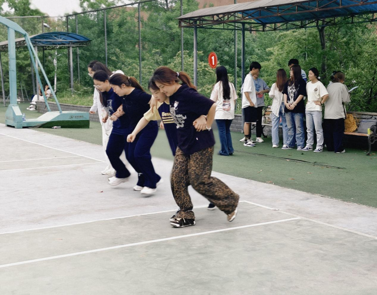 紧接着,两人三足项目积极开展。参赛的同学们两两一组,用绑带将相邻的脚牢牢系在一起,并肩而立,相互鼓励。“一二、一二”,随着整齐划一的口号声,他们步伐协调一致,奋力向前奔跑。有的小组配合默契,如同离弦之箭般冲向终点;有的小组起初有些慌乱,但很快便调整节奏,互相搀扶着稳步前行,体会到了“爱拼才会赢”奋斗的乐趣,增添了齐心协力挑战困难的勇气和智慧。