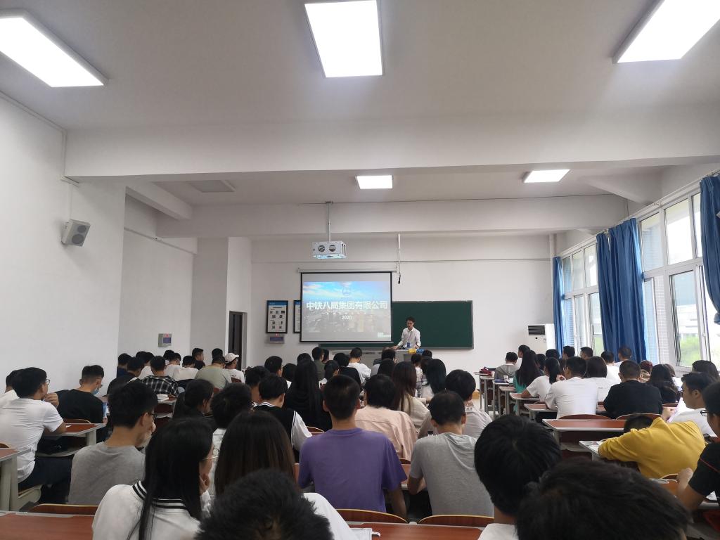 集团公司相关负责人向同学们介绍了公司的成立时间、成立背景,以及公司的承接工程类型,详细地向同学们展示了公司所做出的成绩,同时还向同学们介绍了公司的福利待遇以及引进人才的标准。在介绍完公司情况后,同学们积极提问,中铁八局集团各公司负责人对同学们的问题进行了积极解答。经过简历筛选、多轮面试、笔试等环节,公司20余名学子与中铁八局集团各公司达成就业协议签约意向。