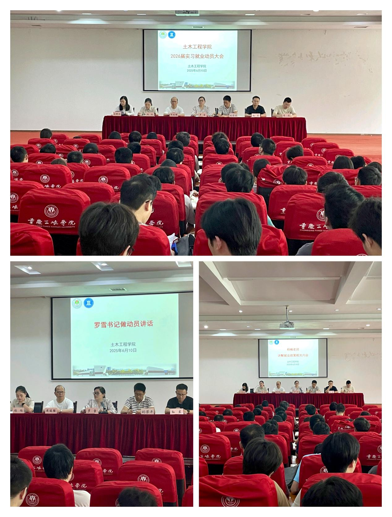 罗雪作总结动员讲话,强调毕业实习是大学教育从理论到实践的“关键跃迁”,是锤炼土木工程专业素养的核心环节,需秉持“实践筑基、安全为先、奋斗为要”的理念: 践行“四勤”准则——眼勤观细节、嘴勤问真知、手勤练技能、脚勤赴一线,以勤勉作风夯实职业根基; 提振就业“主动意识”,保持对行业的热忱与对岗位的敬畏,主动拓宽信息渠道,积极把握就业机遇;树立“理性职业观”,既要正视自身优势与不足,锚定合理职业定位,也要做好吃苦准备,以务实心态看待成长与回报,避免单一化、功利化的选择误区。