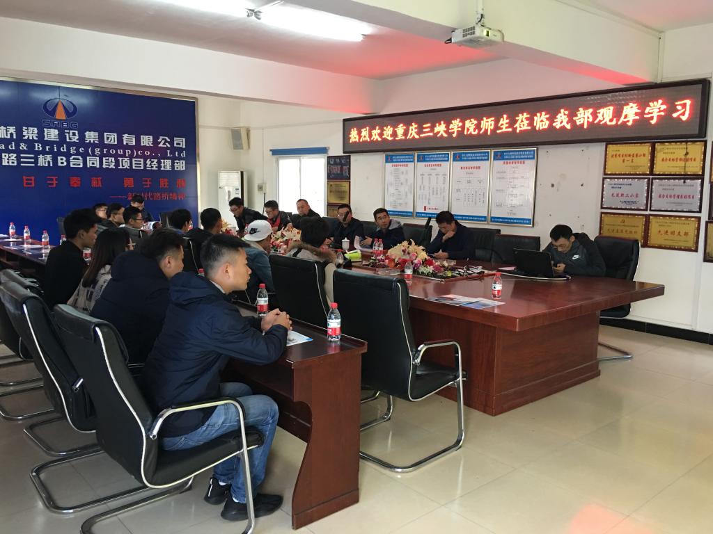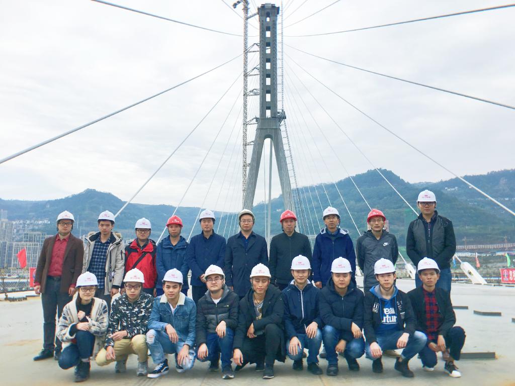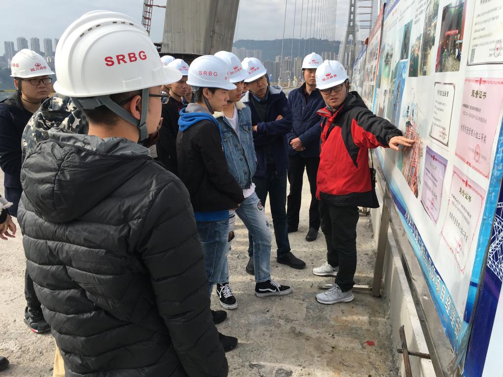 11月9日上午,土木工程公司党总支书记方灿,经理程龙飞,副经理郭远臣,教务助理闫磊,学工办主任洪鹏,2015级辅导员王刚,带领2015级安全工程专业11名毕业生,受四川路桥集团万州长江三桥项目部邀请, 前往参观学习。