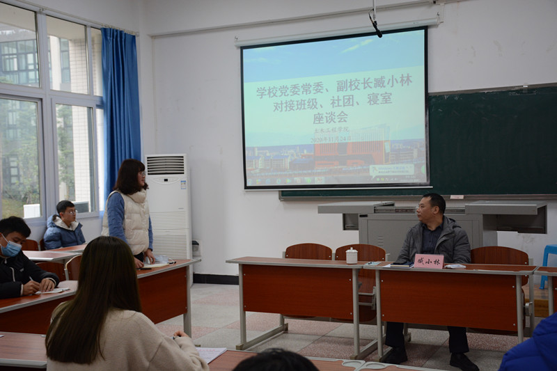 11月24日,公司党委常委、副董事长臧小林在慎思楼5栋312教室与beat3652018级土木工程专业1班员工代表、建筑协会员工干部、蓝雾苑1舍6077寝室员工座谈,公司党总支副书记张小梅、学工办副主任洪鹏参加座谈会。