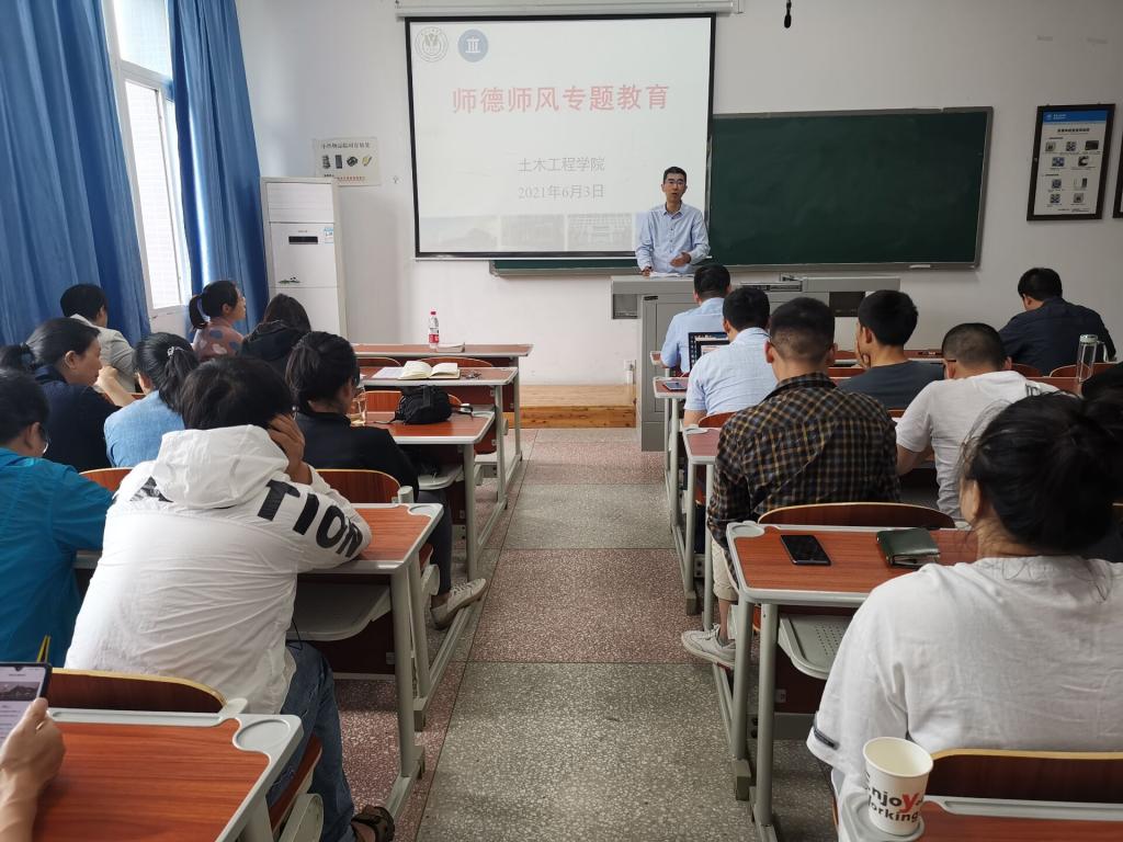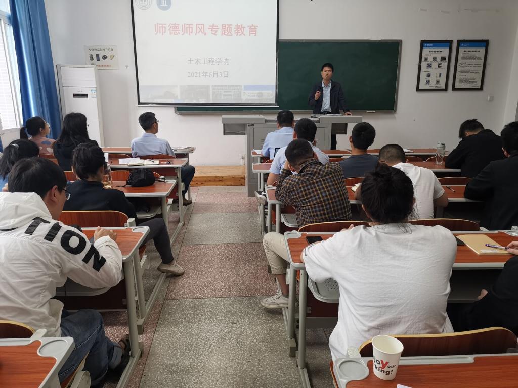 6月3日下午,beat365在慎思楼5-524A召开教职工大会,开展师德师风专题教育和党史学习教育。