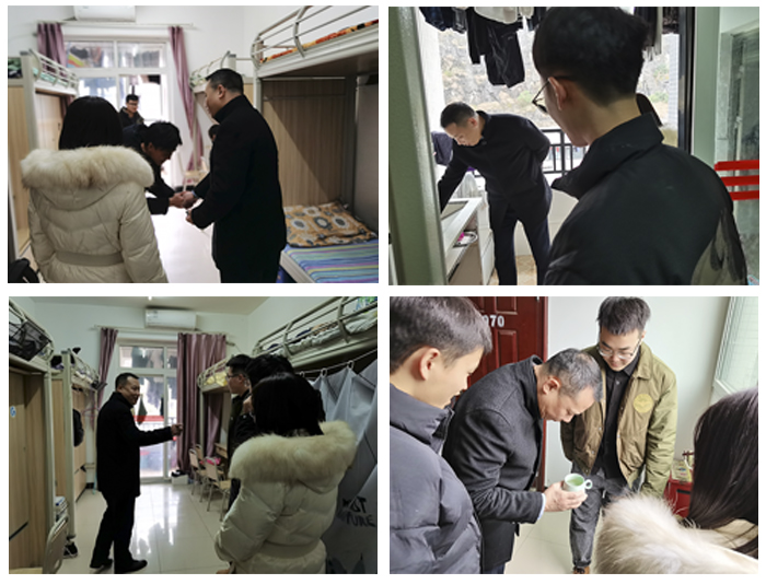 为深入贯彻落实立德树人根本任务,关心关注员工成人成才,12月29日下午,公司党委常委、副董事长臧小林深入基层,走访了联系的2018级土木工程1班、建筑协会、党支部等部分员工寝室,与同学们亲切交谈,深入了解他们的学习、生活、就业、升学等成长发展情况。