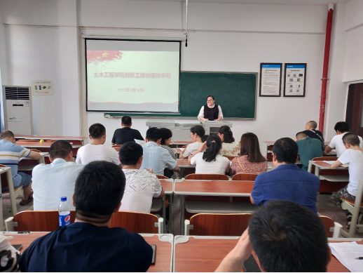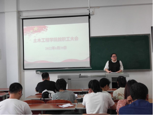 6月30日下午2:30,土木工程学院在慎思楼5栋523召开了教职工大会暨教职工政治理论学习,全体教职工参加会议,会议分为三个阶段。专职组织员阮华琼、组织部组织干部科科长蔡循光列席旁听了学习,会议由学院党总支书记罗雪主持。