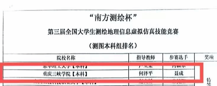 11月25日,由重庆市住房城乡建设委员会、重庆市人力资源和社会保障局、重庆市总工会共同主办的“巴渝工匠”杯2023重庆市首届测绘地理信息行业职业技能竞赛落下帷幕。经激烈角逐,beat3652020级土木工程1班员工聂成获一等奖,2021级土木工程1班苏崇扬获二等奖,2020级道路桥梁与渡河工程专业陈嘉鑫获第五名,2021级土木工程2班廖冰艳获第六名。