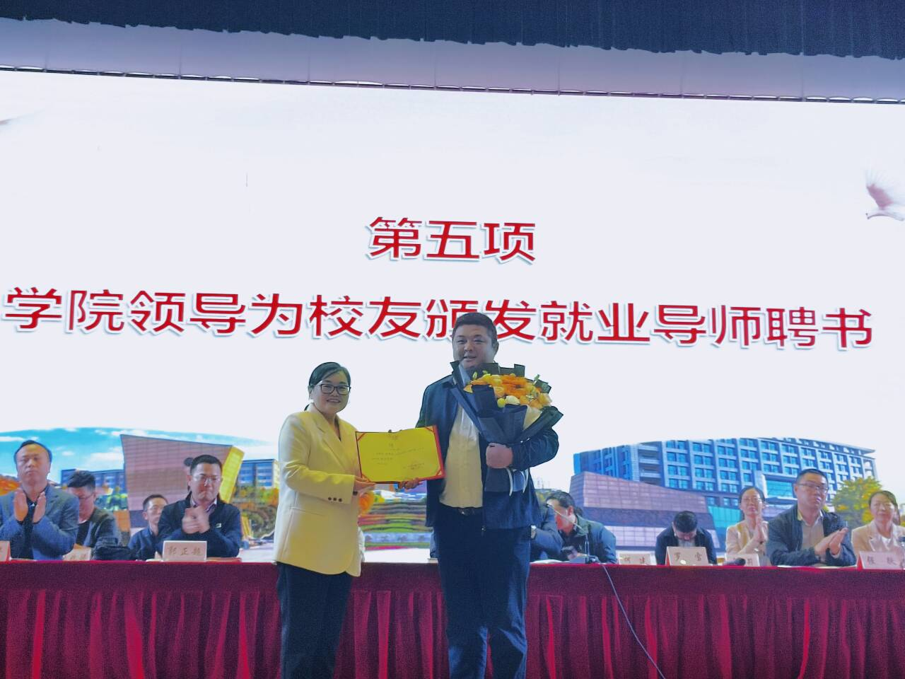 罗雪代表公司为优秀员工刘青松颁发就业导师聘书。