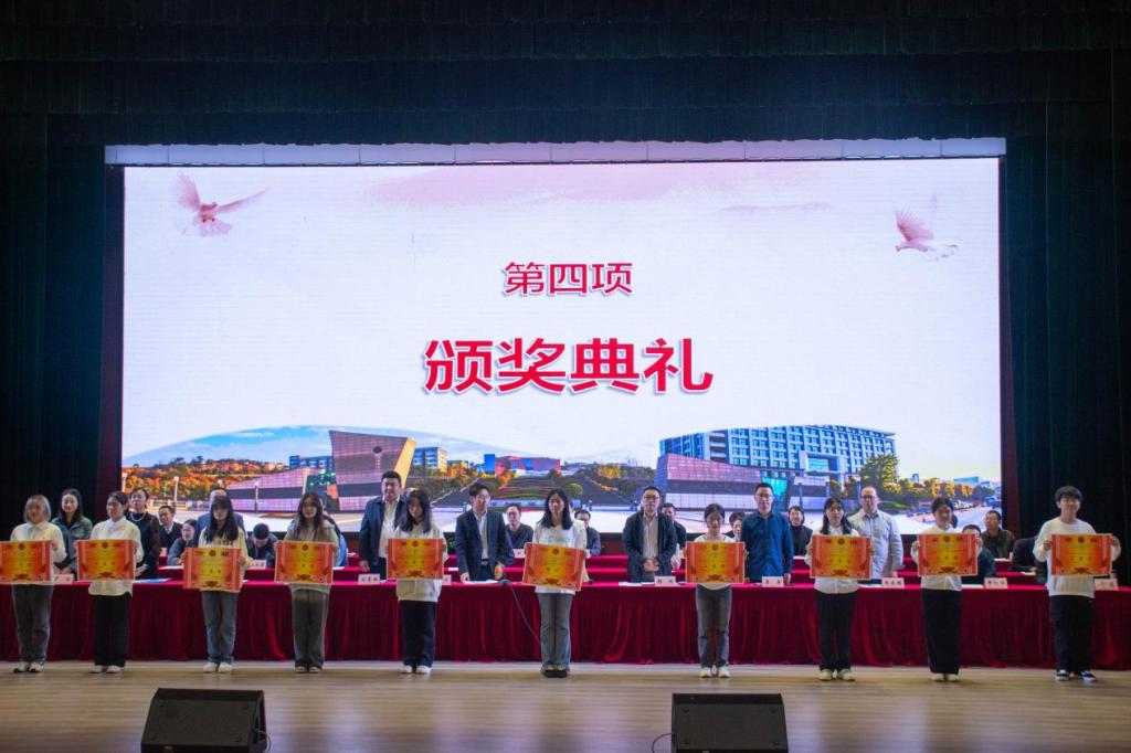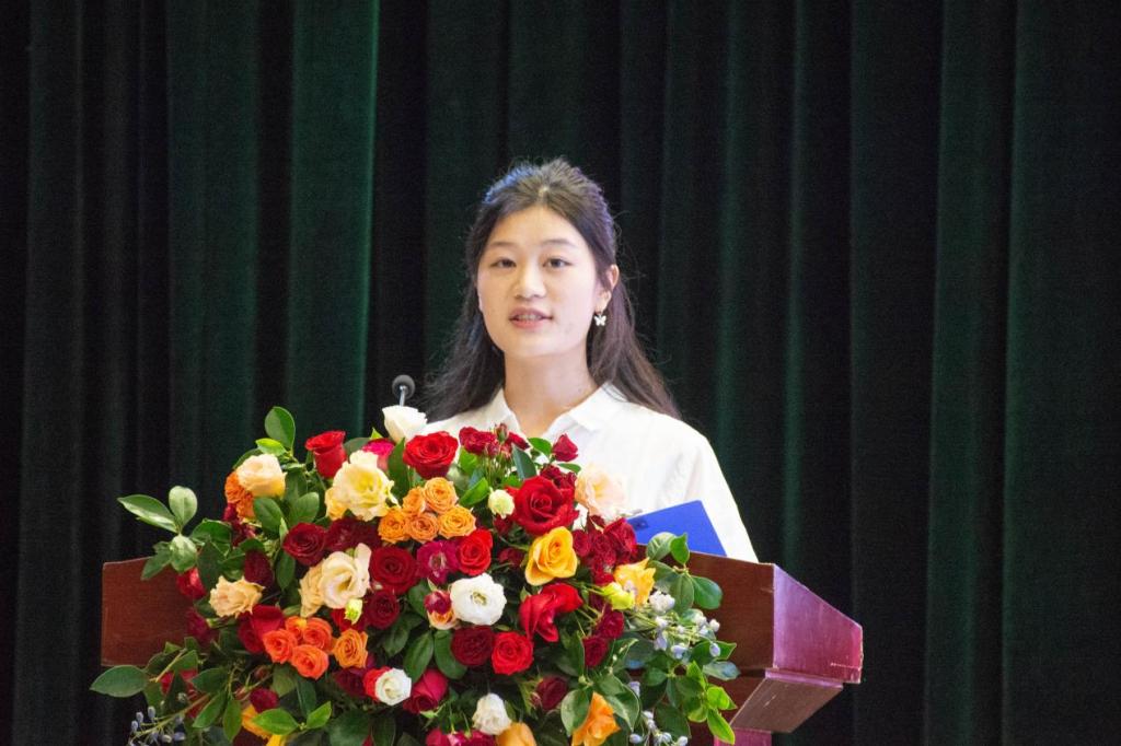 获奖员工代表2021级廖冰艳同学发言,她代表全院员工感谢beat365老师们的无私奉献与教导,从专业学习、专业竞赛、奉献社会、服务同学等方面分享了自己向下扎根,向上生长的成长历程。她鼓励学弟学妹们在大学期间自由探索、全面发展,接续奋斗,做与新时代同向同行、共同奋进的土木学子。