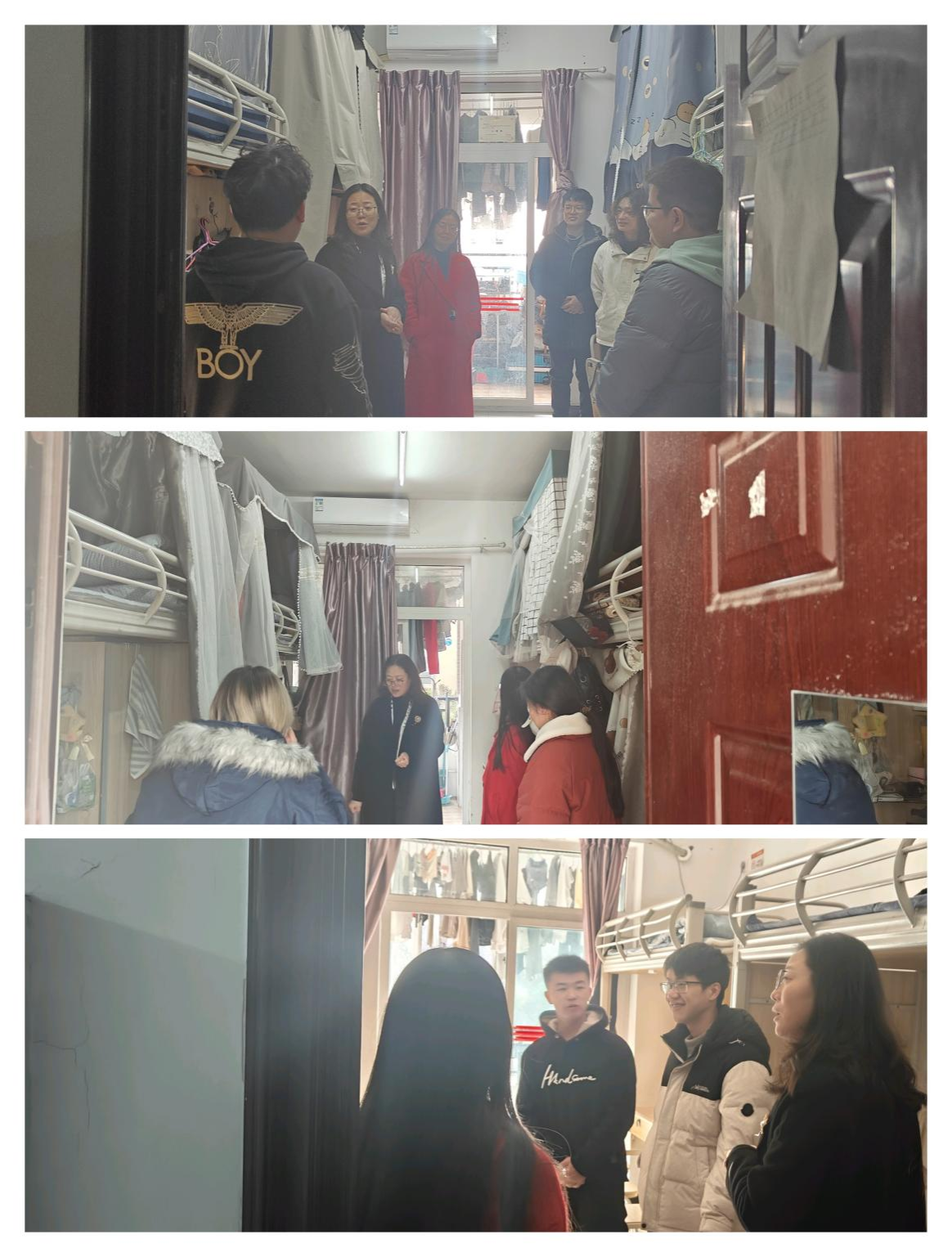 为深入推进“三全育人”工作体系,积极响应公司机关处级干部联系员工班级通知精神,落实立德树人根本任务,深入一线了解员工成长需要和现实需求,服务员工成长成才。12月13日下午,公司党委委员、党委教师工作部(人事处)处长黎平带领副处长郭兰、综合科科长钟雨含深入蓝雾苑1舍慰问beat365考研和2022级土木工程3班学子,beat365辅导员李浪陪同走访慰问。
