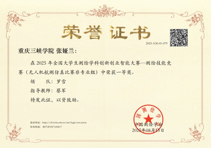 在2025年全国老员工测绘学科创新创业智能大赛总决赛中,获得9项奖项,其中机载激光雷达虚拟仿真比赛一等奖1项、二等奖2项;无人机航测虚拟仿真比赛一等奖1项、二等奖1项;虚拟仿真数字测图比赛二等奖4项。