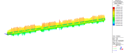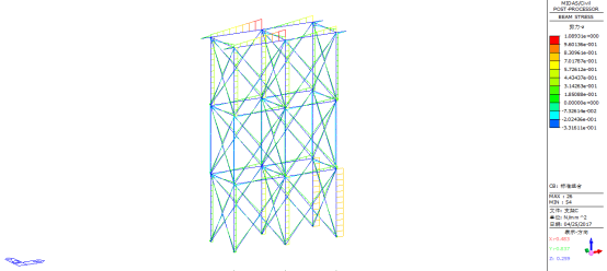图54标准组合下临时支架C最大弯曲应力(单位:MPa)