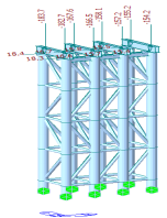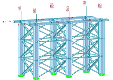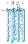 采用有限元计算程序midas/civil 2012分别建立临时支架A、临时支架A’及临时支架C有限元模型,如图31~33所示: