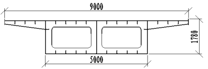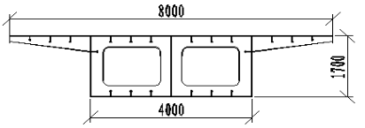 左幅桥、右幅桥、A、B、D匝道桥主梁均采用直腹板,全桥变宽,梁高均为1.7m、1.5m、1.4m,箱梁悬臂长2.0m,悬臂端部厚0.15m,根部厚0.45m,箱梁斜置,铺装等厚,纵、横坡由箱梁底楔形块调整,支座保持水平位置。桥宽8m和9m的钢箱梁采用单箱双室结构,桥宽14m以上的钢箱梁采用双箱双室结构。