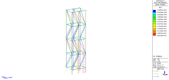 图56标准组合下临时支架C最大轴向应力(单位:MPa)