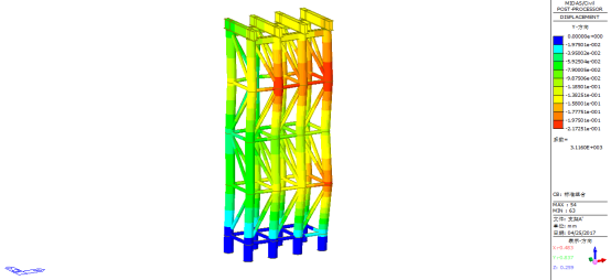 图57标准组合下临时支架C一阶屈曲模态(稳定系数:45.88)