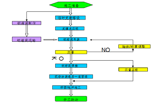 (1)工厂施工准备阶段:施工详图深化设计、材料统计采购、工艺编制、工装设计、焊接工艺评定报告编制、构件放样、工装制造、制作场地准备、施工计划编制等。
