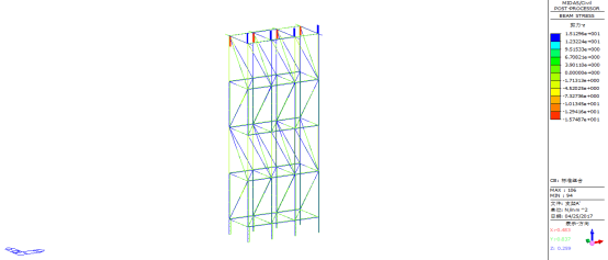 图48标准组合下临时支架A’最大轴向应力(单位:MPa)