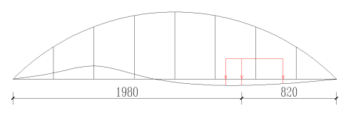 工况4:主拱及系梁跨中截面最大正弯矩加载。