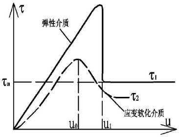 为弹性阶段的剪应力(kPa);G2为弱化段介质的剪切模量;u2为应力峰值点对应的位移(m)。