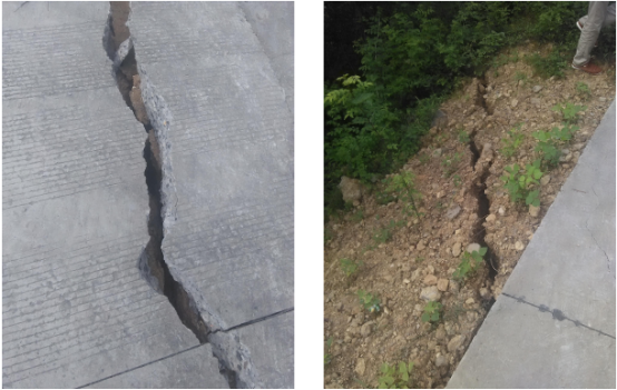 组成滑坡体的成分为粉质粘土夹碎块石,当土体饱水浸润或其外动力因素触发,易顺坡向临空方向产生变形破坏。