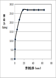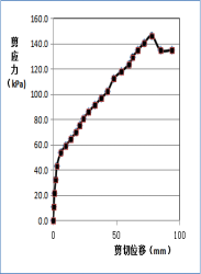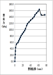 图5 DJ2试验点剪应力与剪切位移关系(法向应力依次为0、43、86kPa)