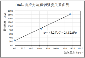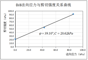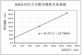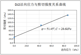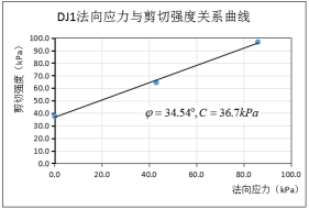 绘制各法向应力下的法向应力一剪应力关系曲线,按最小二乘法确定抗剪强度参数。