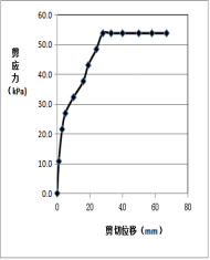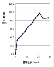 每组最大试验法向应力拟采用150kPa,分别按0、50、150kPa施加(实际分级荷载见后法向应力一剪应力关系曲线图)。每级荷载分四次等量施加,每加一次法向荷载,间隔5分钟测读一次法向变形,即可施加下一次荷载,当加到最后一次荷载时,仍按上述时间读数,如连续两次法向变形读数差不超过0.0lmm时,可开始施加剪切荷载。