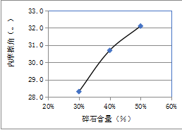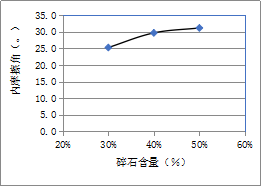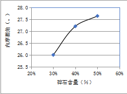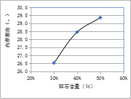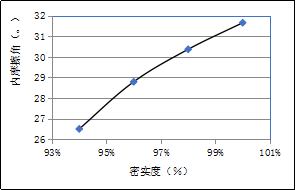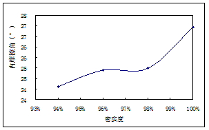 图13密实度与内摩擦角关系(最大粒径5mm,碎石含量50%,含水率8.5%)